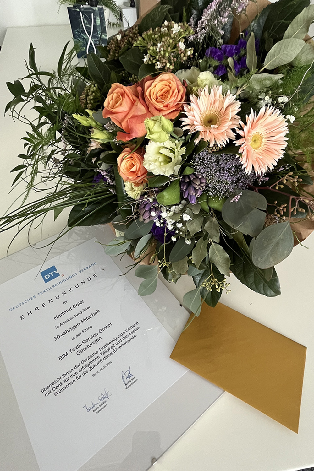 Seither hat sich der Betrieb enorm entwickelt, auch und vor allem durch das Engagement und die Loyalität von Mitarbeitern wie Hartmut Beier. Er kam damals - wir würden heute sagen - als Quereinsteiger zu BIM und hatte sich schnell in die Gegebenheiten und Arbeitsprozesse eingearbeitet. Kollegen und Geschäftsführung schätzen Hartmut Beier als stets verlässlichen Mitarbeiter. Zu seinen Stärken gehört, dass er flexibel neue Aufgaben übernimmt und im Putztuch-Betrieb vielfältig eingesetzt war, in Verpackung, Logistik und im Waschbetrieb.