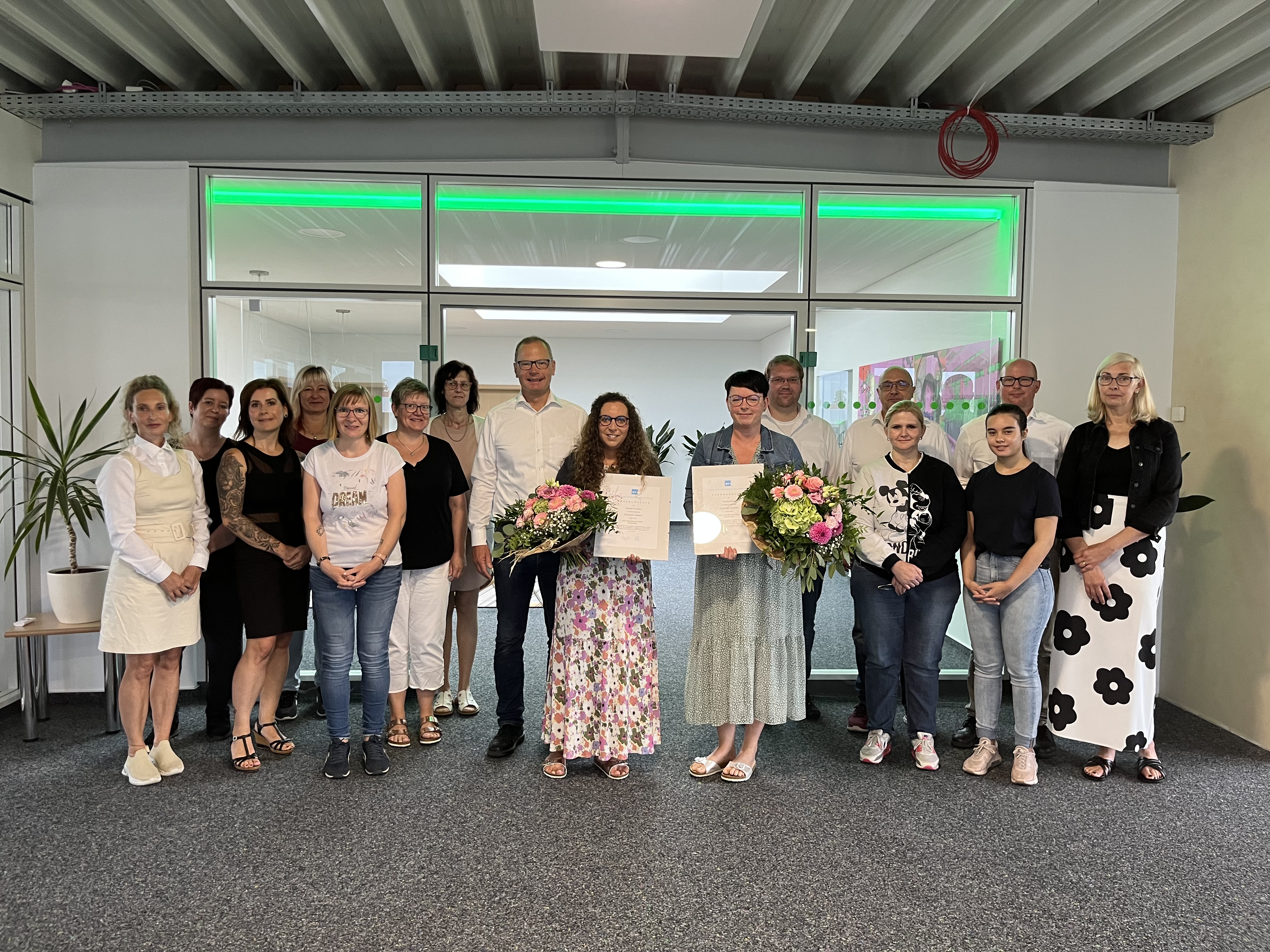 Geschäftsführer Martin Wagner und Produktionsleiter Niklas Wagner sowie die Kollegen aus der Verwaltung waren die ersten Gratulanten zum Jubiläum.