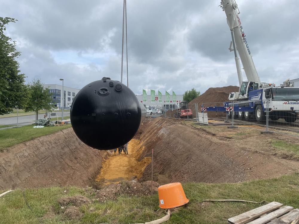 Hydranten und Löschwasservorräte aus Teichen genügen in aller Regel nichtoder sind schwer zugänglich. BIM muss für einen solchen Ernstfall aber 200 Kubikmeter pro Stunde über zwei Stunden vorhalten. "Da war die Investition in eigene Tanks naheliegend, um uns selbst ausreichend zu schützen", macht Geschäftsführer Martin Wagner deutlich.Die beiden Tanks liegen nun frostfrei und UV-geschützt auf dem Betriebsgelände im Erdreich und stehen der Feuerwehr als Tiefteich zur Verfügung. "Damit haben Rettungskräfte im Ernstfall gutes Arbeiten, genügend Löschwasser und einen ungehinderten kurzen Zugang. Das erhöht zudem die Geschwindigkeit beim Einsatz."