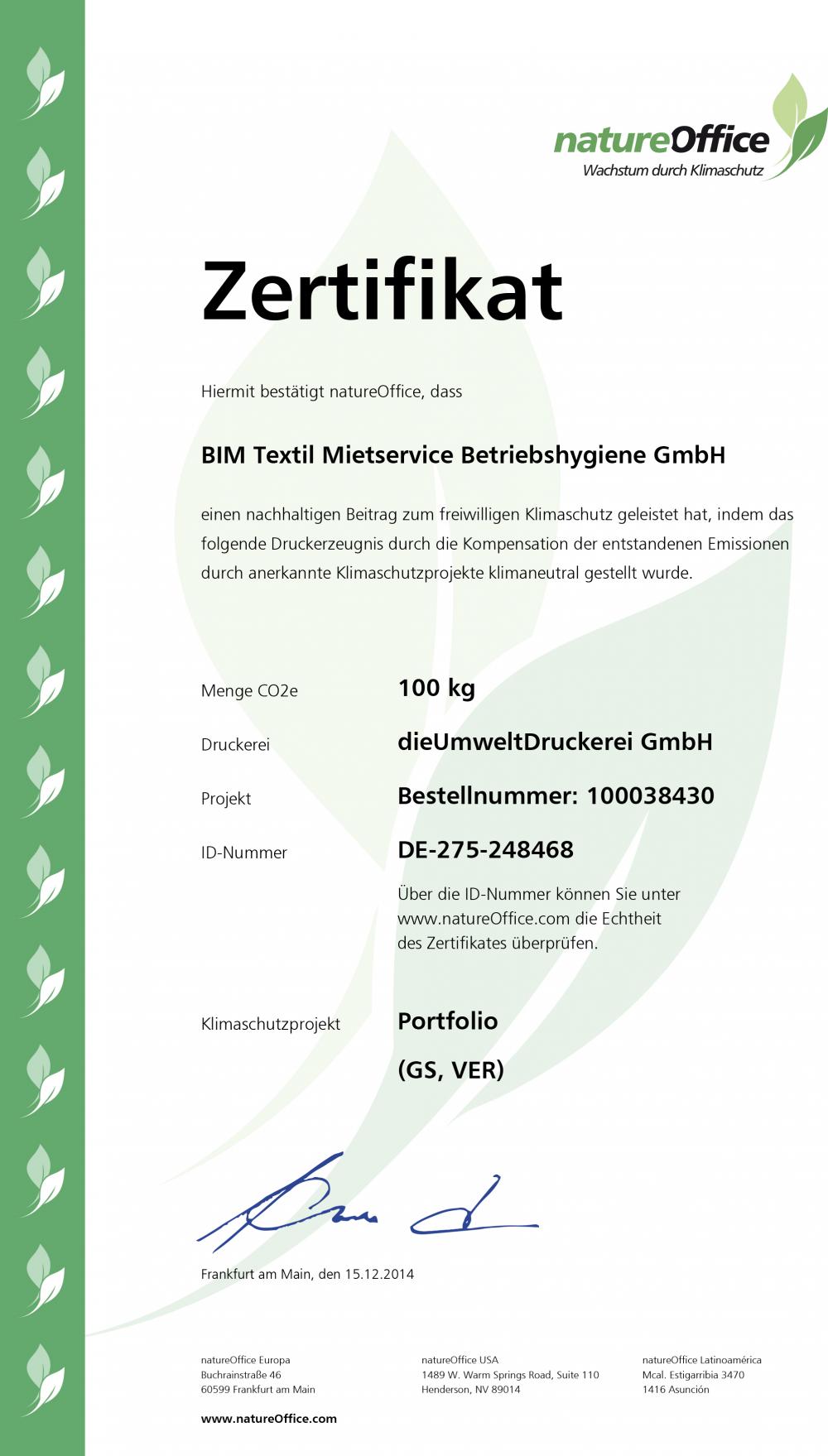 Für den Druck der regelmäßig erscheinenden Unternehmenszeitschrift "BIM direkt" hat sich BIM einen auf klimaneutralen Druck spezialisierten Partner ausgewählt, der die Kompensation der beim Druck entstehenden Emissionen durch anerkannte Klimaschutzprojekte von natureOffice Europa klimaneutral stellt. "Das sind pro Ausgabe um die 100 Kilogramm CO2, für die im Gegenzug das von uns ausgewählte Klimaschutzprojekt im afrikanischen Togo unterstützt wird."