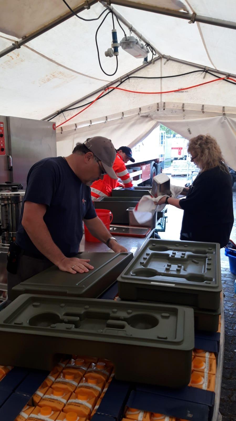 Die täglich eingesetzten 11 DRK-Helfer aus Obersuhl waren für das Zubereiten der Helferverpflegung und als Helfer der Unfallhilfsstellen eingeteilt. „Wir haben täglich das Essen für 150 Aktive gekocht und zweimal am Tag eine warme Mahlzeit ausgegeben. Hackbraten, Bratwürste, Putengeschnetzeltes, Hühnerfrikassee… Eine abwechslungsreiche Menüfolge, damit die Kollegen von DRK, DLRG, Freiwilliger Feuerwehr und Johanniter Unfallhilfe gestärkt wieder zu Ihren Einsatzstellen gehen konnten“, berichtet Thomas Gliem. Er selbst war als Feldkoch im Basislager und Sanitäter mehrere Tage im Kurpark im Einsatz. „Wo viele Leute unterwegs sind, kommt es immer mal zu Zwischenfällen oder Hilferufen. Medizinische Probleme, Eltern suchen ihre Kinder, Kinder ihre Eltern, aber auch Gewalttaten. Das kommt alles vor. Grundsätzlich war es aber eine harmonische Stimmung während des gesamten Hessentages.“