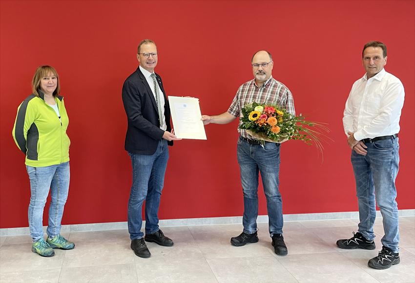 Thomas Gliem gehört seit 10 Jahren zum BIM-Team und ist im der Verwaltung des Bereiches Putztuch tätig. Zum Jubiläum gratulierten Geschäftsführer Martin Wagner, der Technische Leiter Sven Scheermesser und Kollegin Jenny Hobert ganz herzlich. Zum Feiern bleibt dieser Tage für Thomas Gliem allerdings wenig Zeit, denn er ist bereits zu seinem zweiten Einsatz im Hochwassergebiet in Bad Neuenahr-Ahrweiler.