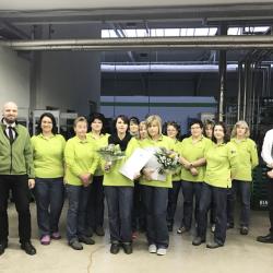 Noch einmal, so kurz vor Weihnachten, gab es Glückwünsche zu Betriebsjubiläen unserer Mitarbeiter. Geschäftsführer Martin Wagner und Produktionsleiter Stefan Braun gratulierten Nicole Broscheit und Manja Ehlert zu ihrem 10-jährigen Betriebsjubiläum. Für beide gab es dazu auch beste Wünsche von den Kolleginnen des Unternehmensbereiches Berufsbekleidung, in dem die beiden Frauen tätig sind. "Als Familienunternehmen ist es uns wichtig, dass wir unseren Mitarbeitern ein langjähriger und verlässlicher Arbeitgeber sind. Aus diesem Grund freut es uns immer ganz besonders, wenn wir Beschäftigten zu ihren Betriebsjubiläen gratulieren dürfen", sagte der Geschäftsführer.