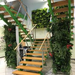 Die vertikale Wandbegrünung und zusätzliche Kübel mit Grünpflanzen sind im BIM Verwaltungsbereich zu einem ein echten Blickfang geworden. Doch nicht nur das. Die Bepflanzung hat einen ganz praktischen Nutzen, denn die Pflanzen reichern die Luft mit Sauerstoff an. Die von den Blättern abgegebene Feuchtigkeit verbessert die Raumluft. Dies ist vor allem während der Heizperiode von Vorteil, wenn die Luft in Wohnräumen besonders trocken ist. Bei großflächigeren Wandbegrünungen verbessert sich die Akustik und es hallt nicht mehr so sehr. Kleine Räume lassen sich so mit Pflanzen ausstatten, ohne viel Fläche einzunehmen. Von einer Verbesserung der Raumluft berichteten die Mitarbeiter des Bereiches sehr rasch und zeigten sich mit diesem Effekt sehr zufrieden.