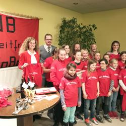 Die U12-Fußballerinnen des Sport- und Freizeitfreunde Raßdorf e. V. durften sich zur Weihnachtsfeier über neuen Satz Einspielshirts und eine Spende von 2000 Euro freuen, die der Geschäftsführer der BIM Textil Service GmbH an die jungen Spielerinnen und ihre Trainerin Carola Claus übergab. "Wir unterstützen damit gern die engagierte Arbeit des Vereins, in dem der sportliche Nachwuchs aus der Region in besonderer Weise gefördert wird", so Martin Wagner. Vereine hätten darüber hinaus viele Aufgaben zu stemmen, um den laufenden Spielbetrieb und die Vereinstätigkeit finanziell abzusichern. Um Verbindlichkeiten aus dem Bau des Vereinsheims abzuzahlen, werde die Spende deshalb gut angelegt sein. Das Mädchenteam hatte zur Weihnachtsfeier doppelte Freude, denn die Mannschaft hatte tagsüber die Hinrunde der Hallenkreismeisterschaft für sich entscheiden können. Viel Glück und Erfolg für die Rückrunde!