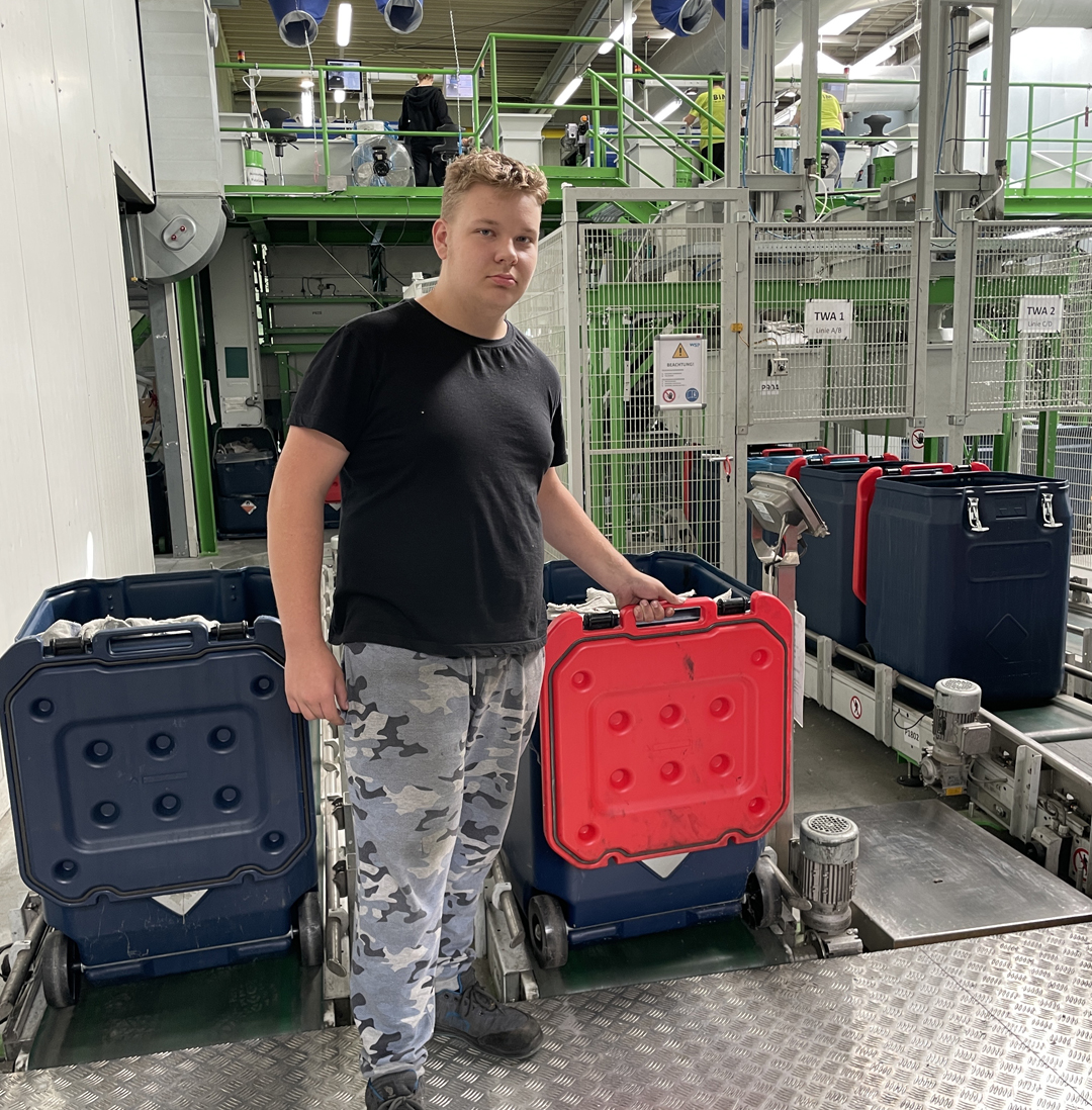 Emma und Jakub gehörten zu den 8 Schülerinnen und Schülern, die in ihren Ferien bei BIM gejobbt haben. Sie waren bei uns in den Produktionsbereichen Textilservice und Putztuch sowie in der Weberei eingesetzt.
