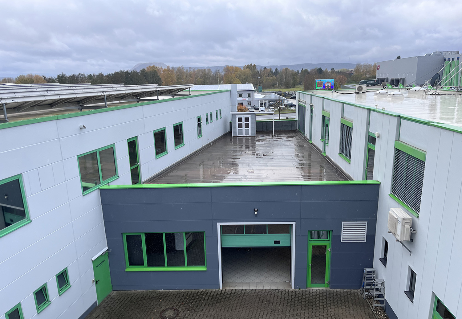 Noch ist die Terrasse, die zwei Betriebsgebäude von BIM verbindet, eine Baustelle. Ab dem Frühjahr werden dort die Mitarbeiter in ihren Pausen ein lauschiges Plätzchen im Lounge-Stil nutzen können.